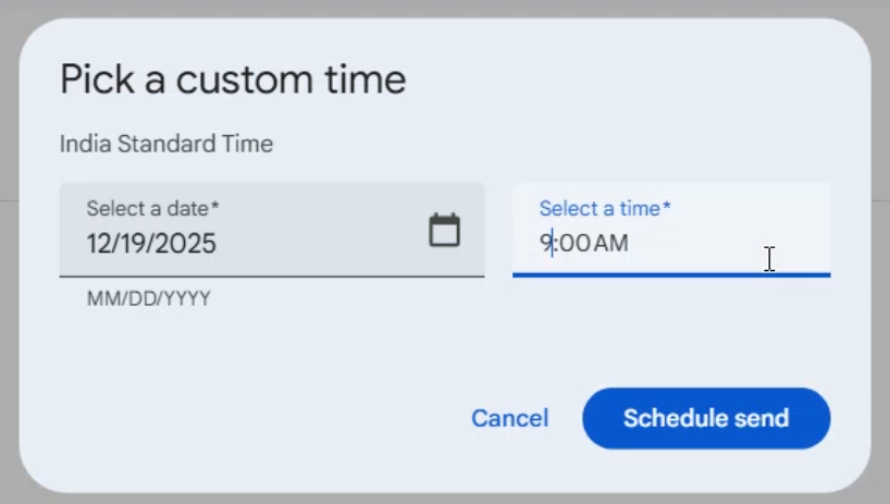 You'll get three preset options to select from. If the recipient is in a different time zone, their time will be shown underneath.
