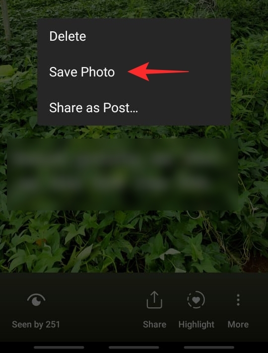 Now tap the ‘More’ button in the bottom right corner of the story (three dots), and select ‘Save video’ or ‘Save photo’ depending on the story.