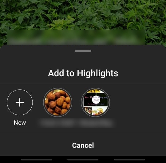 Now tap the story to select it, then tap the ‘Highlight’ button in the bottom panel. You can choose to create a new highlight, or add it to a previously created one.