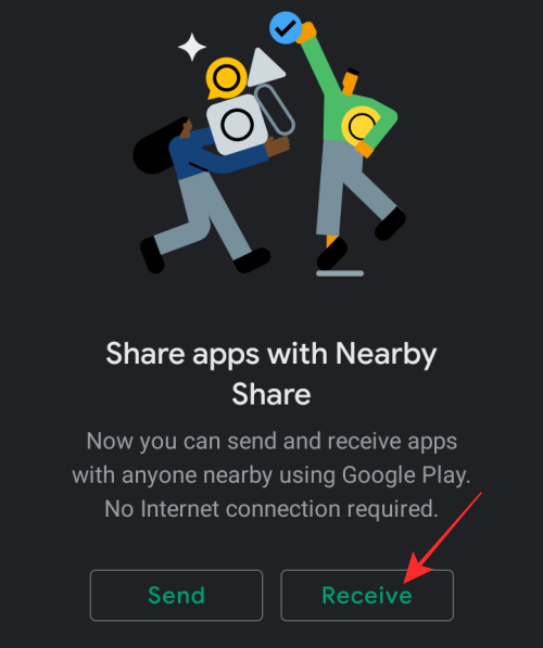 For sharing apps with Nearby Share, you also need to use the ‘Receive’ feature inside the Share screen on Google Play. To start receiving apps on your Android phone using Nearby Share, open the Google Play Store on the device you want to receive and tap on the hamburger button from the top left corner of your screen.