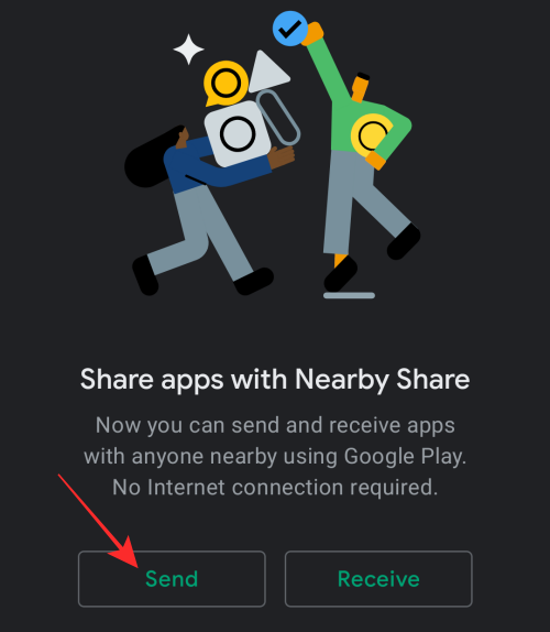 When you tap on the ‘Share’ tab, you will be asked whether you wish to send or receive apps on your Android phone. Tap on the ‘Send’ button at the bottom of the screen if you wish to share the apps on your device with someone else.
