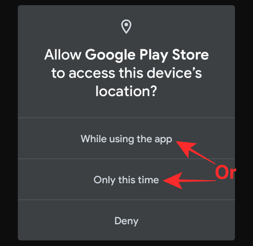 You will need to select how you want the Play Store to access your location. If you plan to use the share apps functionality often, then tap on the ‘While using the app’ option; otherwise, tap on the ‘Only this time’ option.