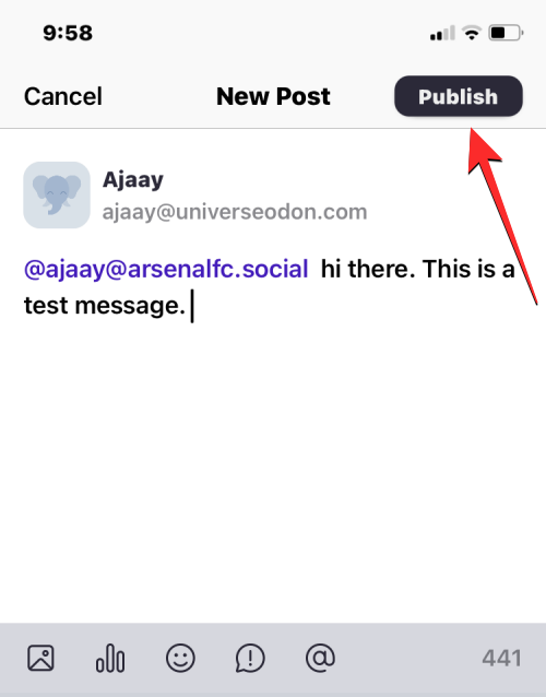 Once your message is ready to be sent, tap on Publish at the top right corner.