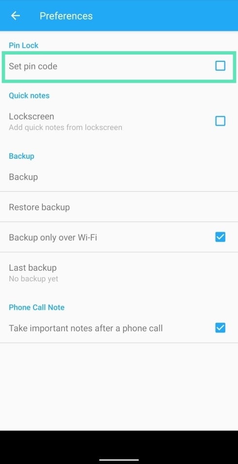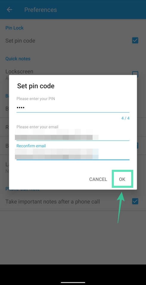 The entered password is now set for the notes app. Every time you open the app, you’ll be forced to enter the PIN.