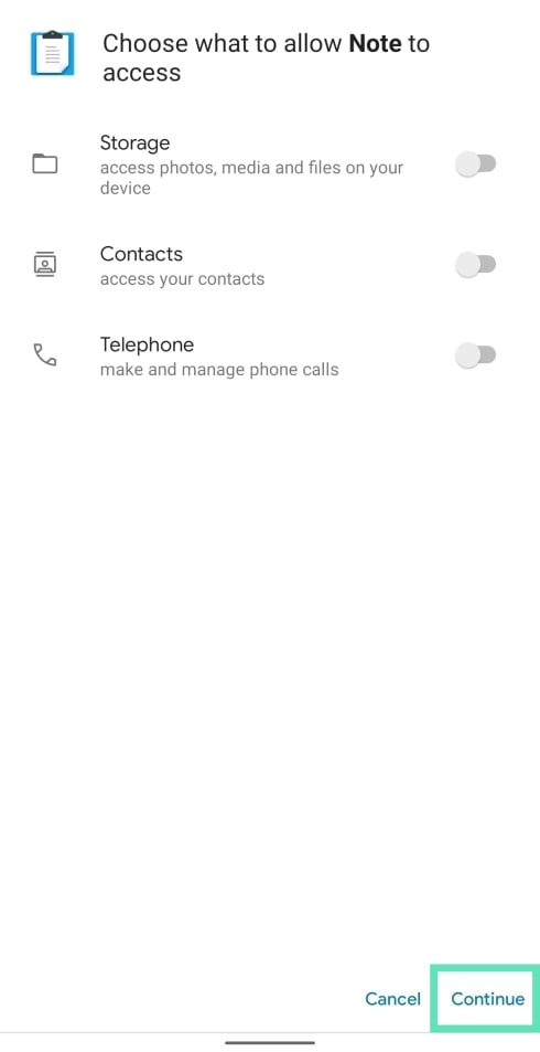 Step 4: After selecting the necessary permissions, tap on Continue at the bottom.