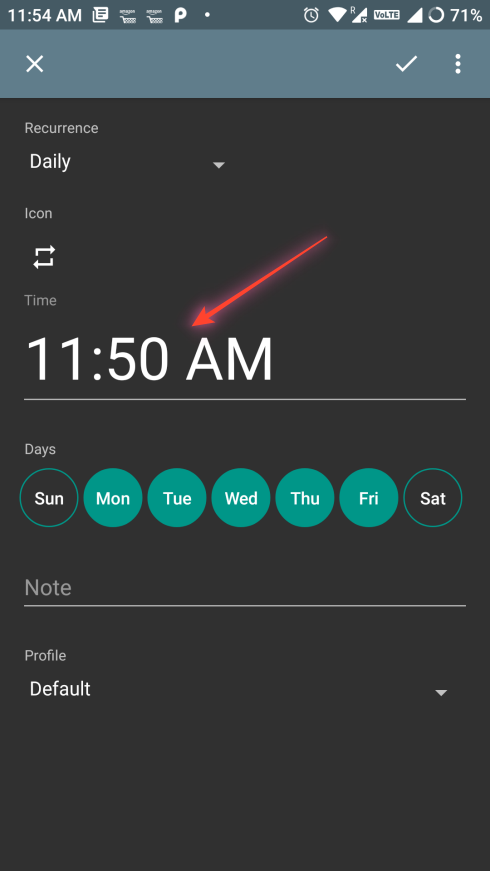 Step 4: Enter the time for the alarm from the option in the middle of the screen.