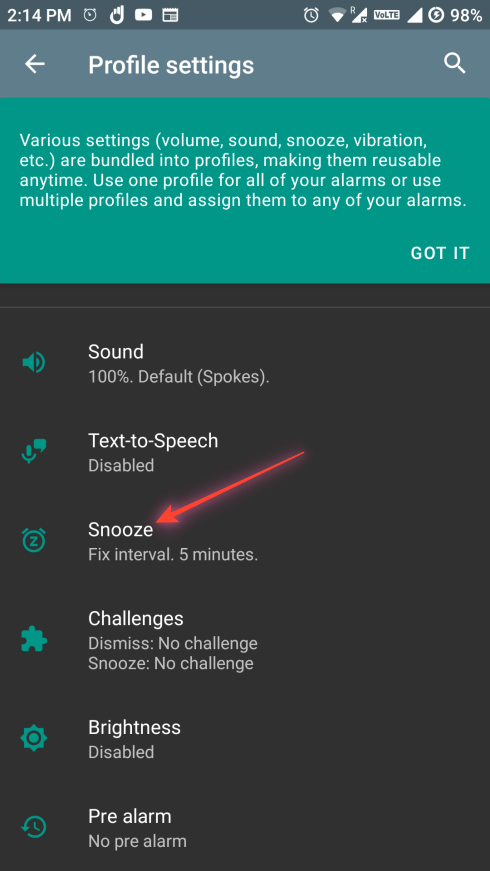 Step 5: Click on the ‘Snooze’ option on the same screen.