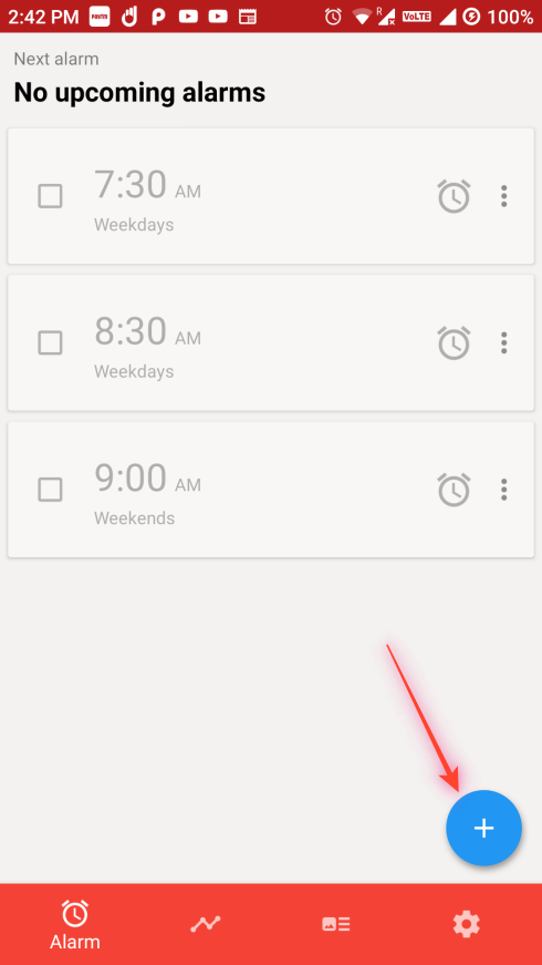 Step 2: Click the ‘Plus’ icon at the bottom right of the landing page to add an alarm.