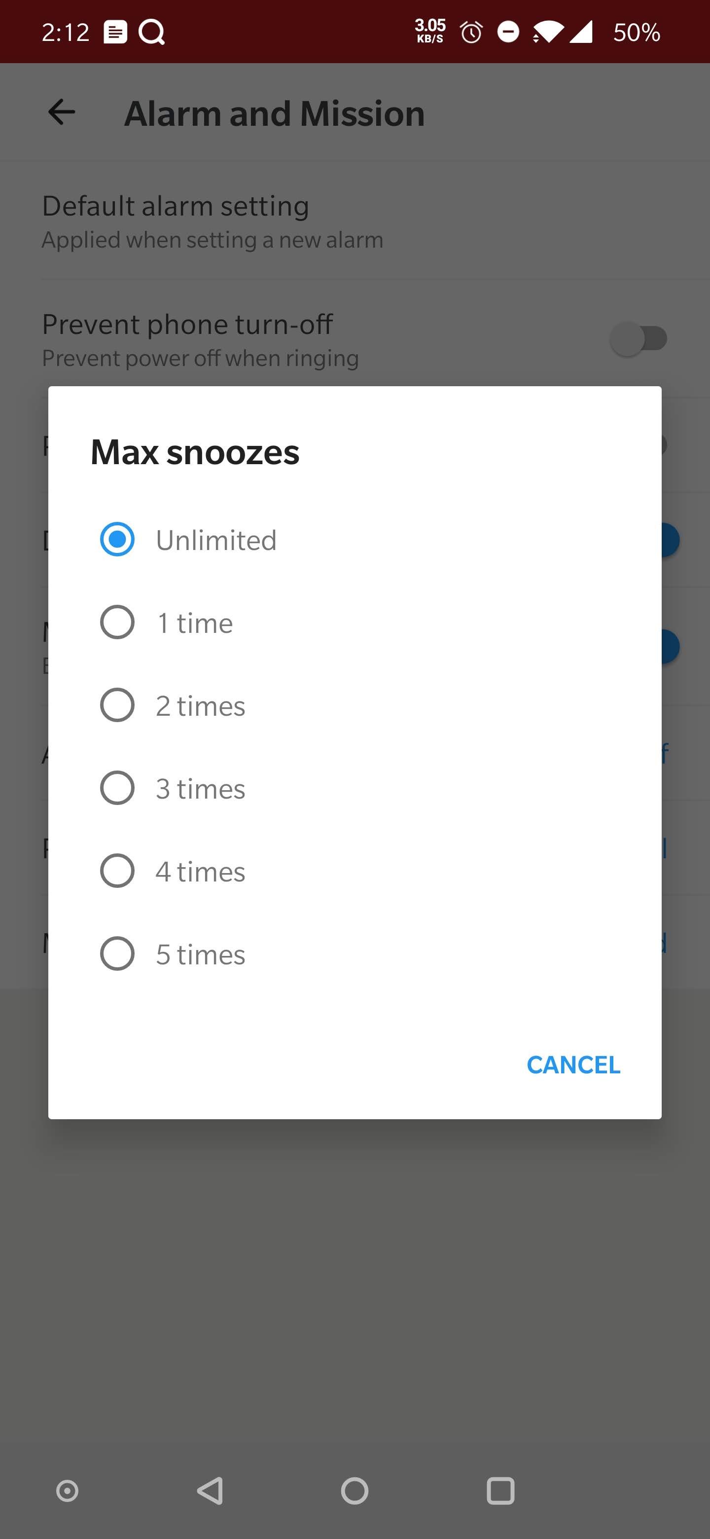 Step 7: Change the Maximum Snoozes setting to Unlimited now. For that, do this: