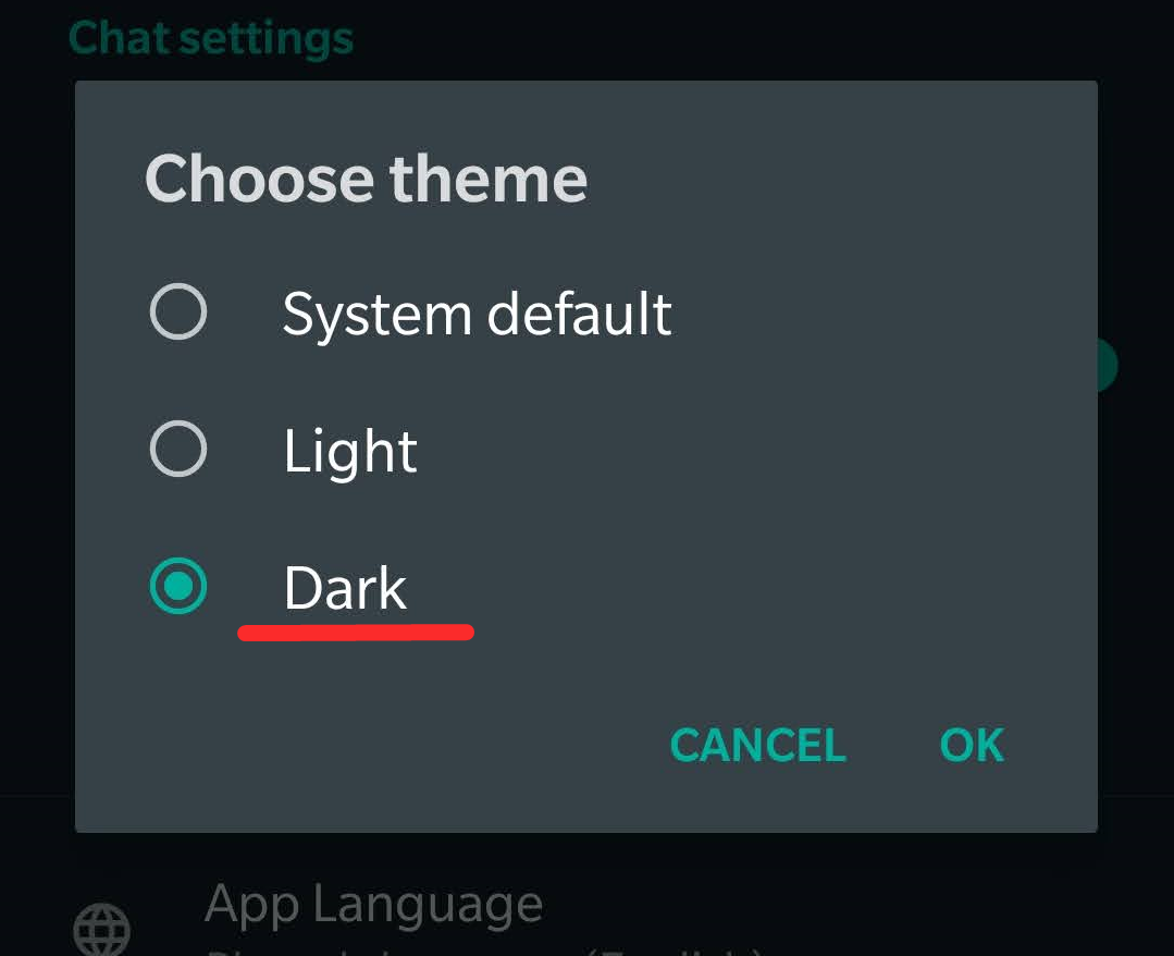 In Dark mode, you will see a slider that allows wallpaper dimming of each individual chat. You can dim the wallpaper of each chat to different extents.