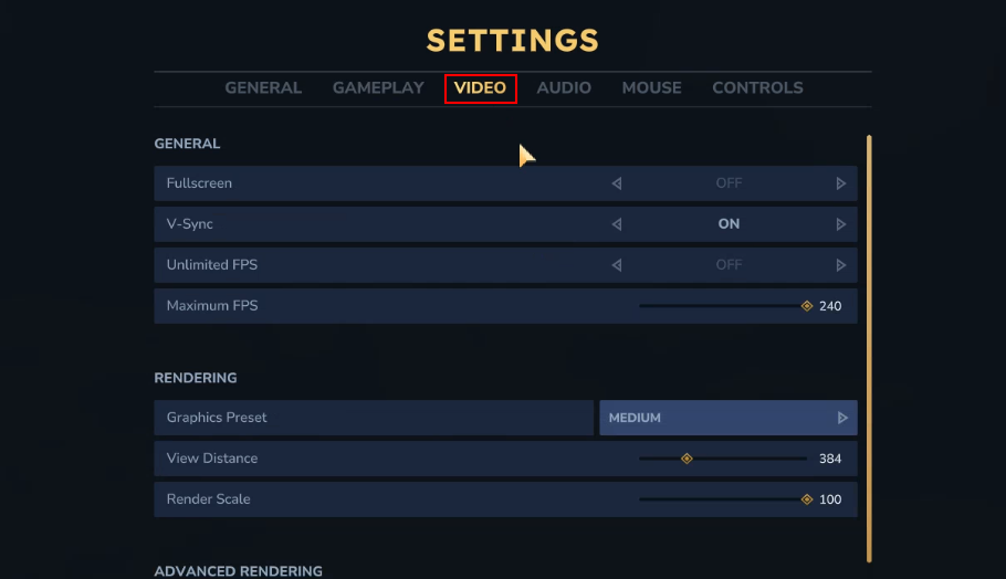 Look for the Fullscreen option under the General section. Even if it appears unclickable or greyed out, simply clicking on it should toggle it between OFF and ON.