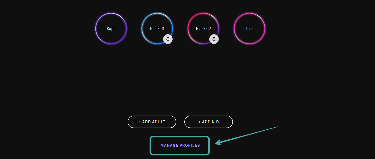 Once you are on the profile choosing page, click on ‘Manage Profiles‘ at the bottom of your screen.