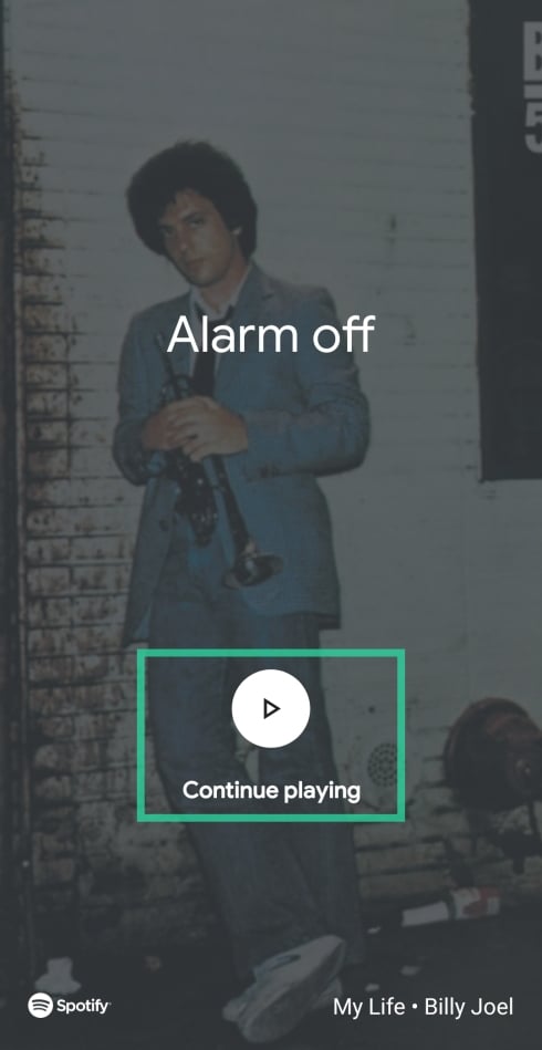 That’s it! You have successfully set Spotify songs as your alarm sound. When the alarm goes off, the name of the song and the album art will be displayed on the screen. You can snooze or disable the alarm and also opt to keep listening to it by tapping ‘Continue playing’.