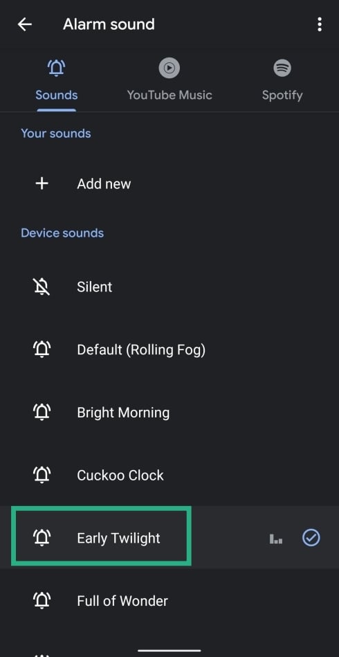 After trying out all of the options, if you’re not satisfied with sounds provided by Spotify, YouTube Music or Pandora, you can switch to your default alarm sound by following the instructions below.