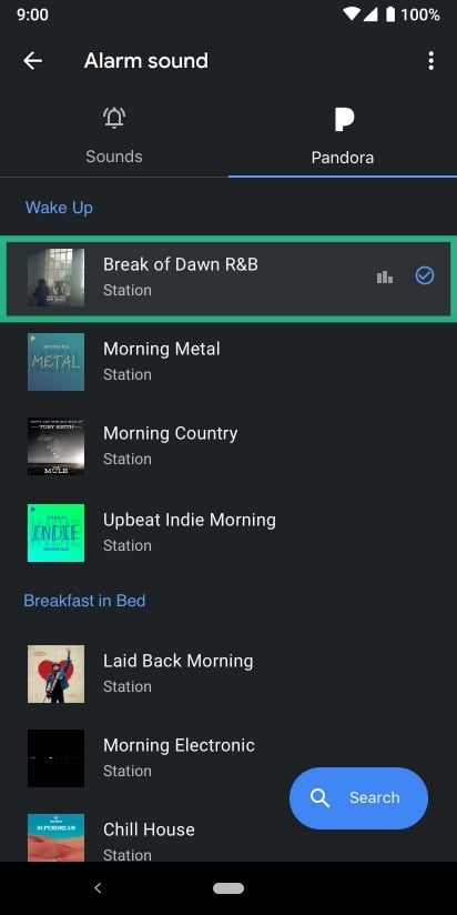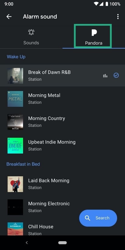Setting alarm sounds from Pandora works in a similar fashion to that on Spotify. Both free and premium users of Pandora can set alarm sounds in the Clock app.