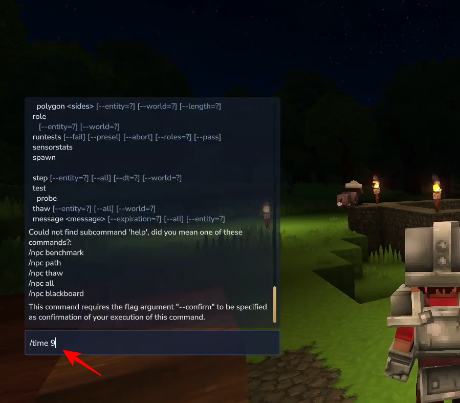 Press the Enter key to execute the command. You will see a confirmation message, and the world’s lighting will immediately shift to the selected time.