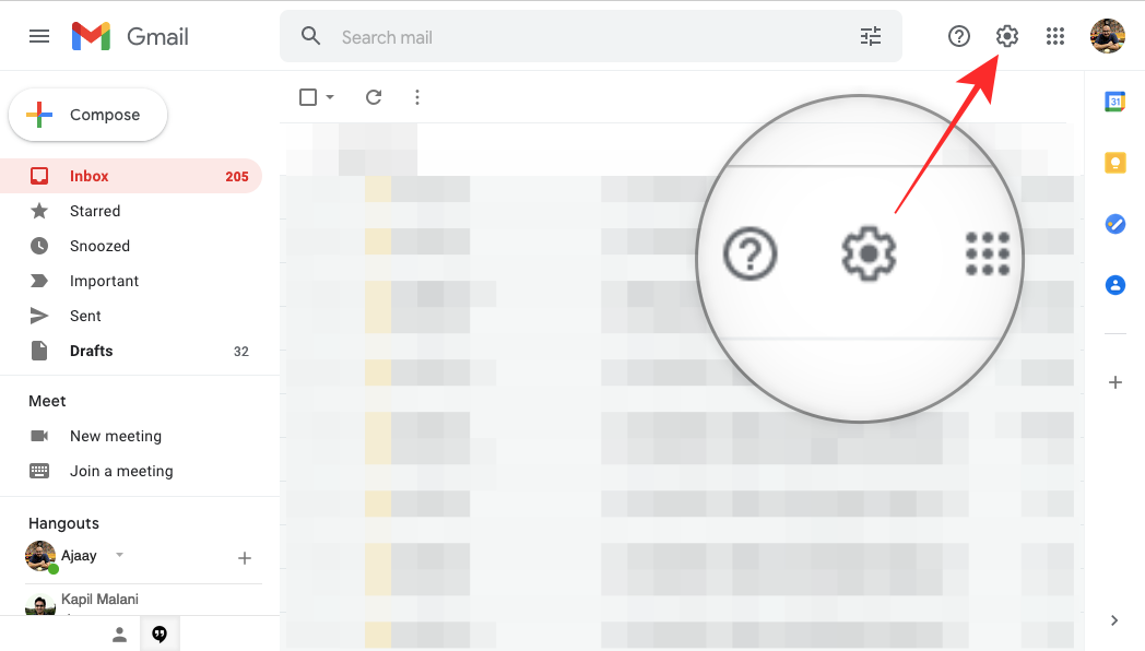 To get started, open mail.google.com on the web and sign in with your Google account if you haven’t so. Inside Gmail, click on the cogwheel icon at the top right corner.