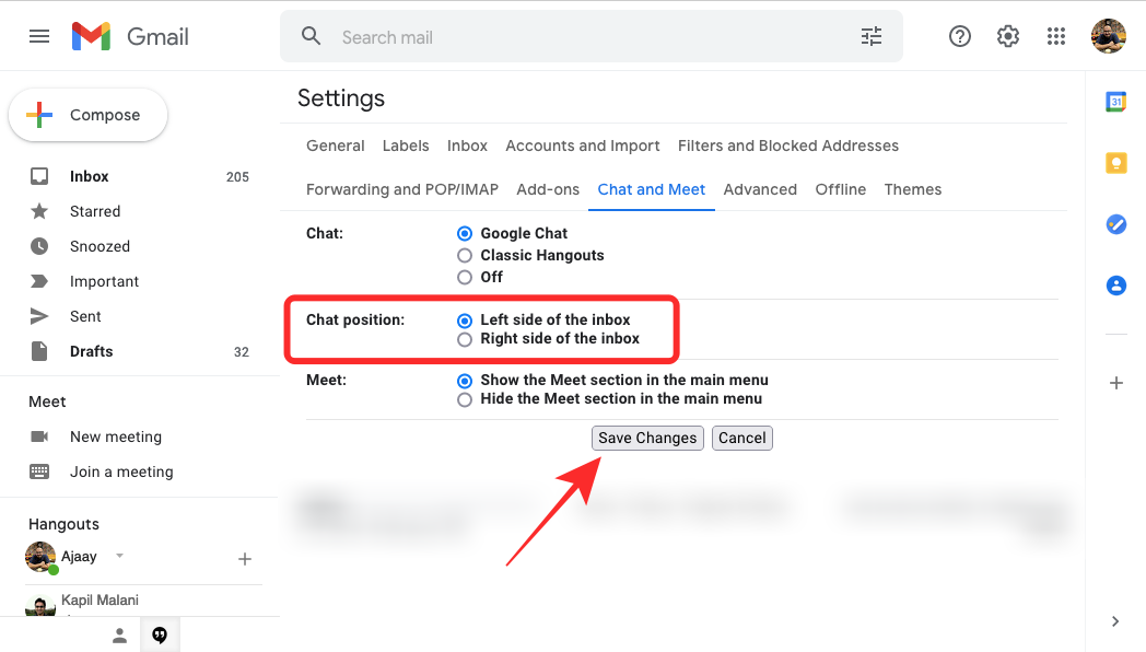 Additionally, you can choose which side of the inbox you want Google Chat to appear at by selecting your preferred choice inside ‘Chat position’.