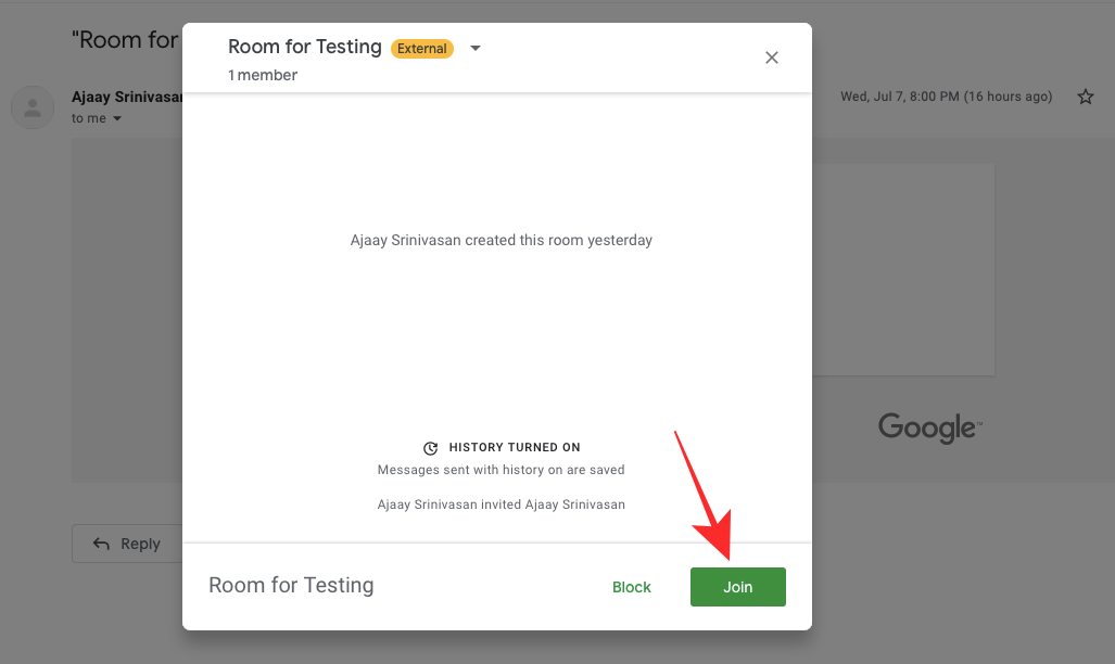 If someone created a Space for you to join, you will receive an invitation on Gmail. To access the invitation, open mail.google.com on a web browser and sign in to your Google account. Inside Gmail, look for the email that reads “[Name of] Space – Invitation to join” and open it.