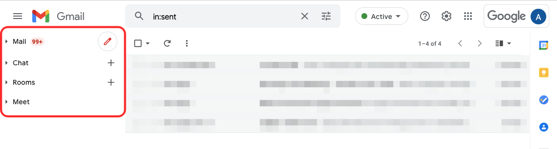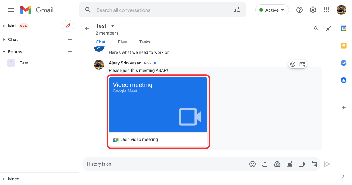 Once Gmail is reloaded, you should be able to see the new “integrated workspace” which shows Mail, Chat, Rooms, and Meet as tabs on the left/right sidebar.