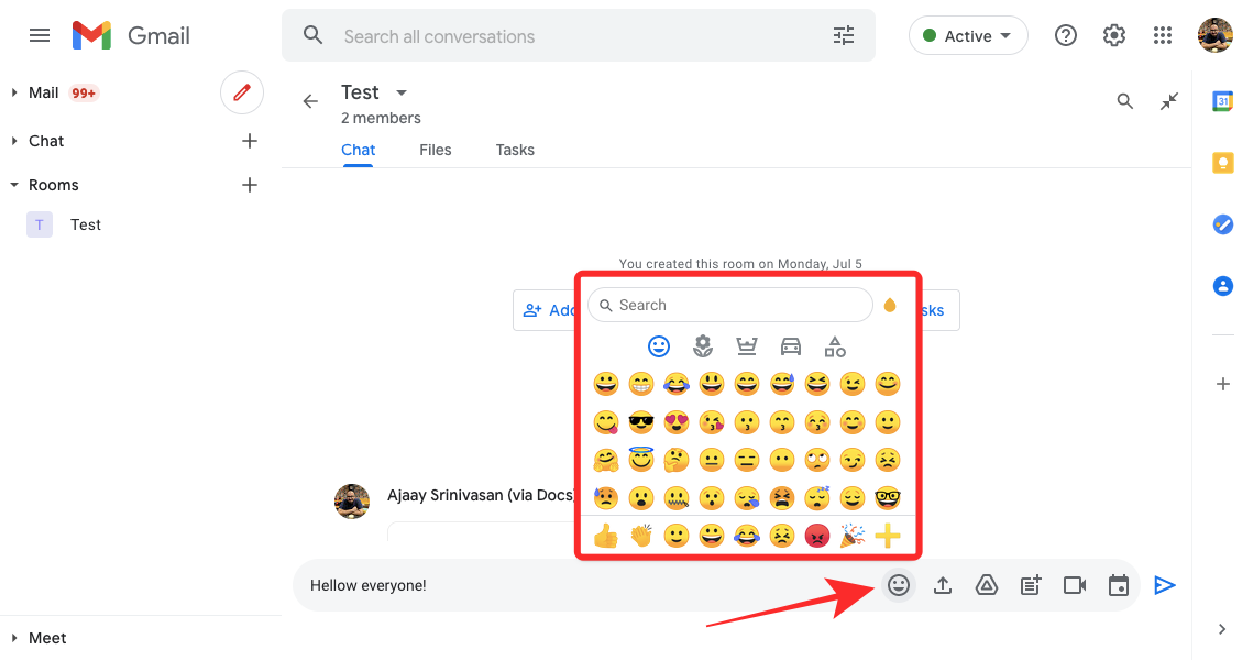 You can also add emojis to your message by clicking on the Emoji icon on the right side of the text bar and select the emoji you want to add to your message.