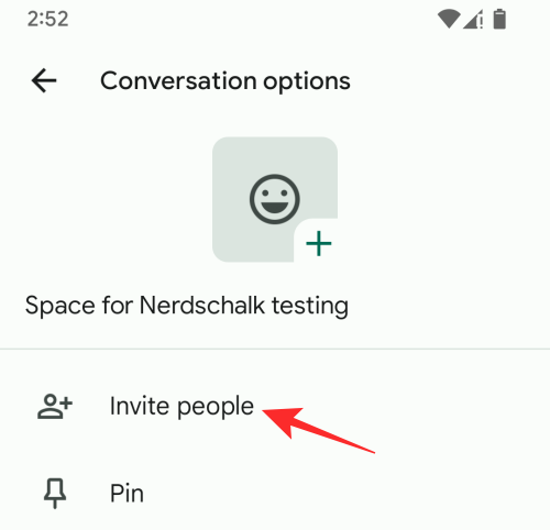 Inside the ‘Conversation options’ screen that appears next, tap on ‘Invite people’ and start adding more people to your space.
