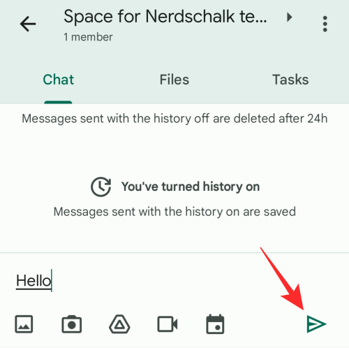 You can also create and schedule events on Google Calendar for everyone in a Space to see by clicking the Calendar icon from inside the text field at the bottom.