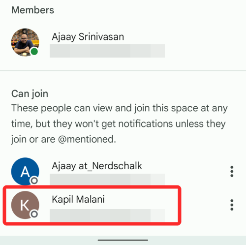 On the phone, you can add anyone even after your Spaces have been created. For this, open the Spaces you created earlier and tap on the name of the Space at the top of your screen.
