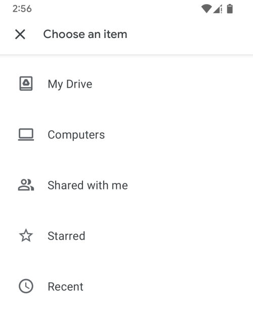 You should now see a popup screen appear showing you all the files that are available on your Google Drive account. You can select the files you wish to add to the Space from under various tabs (My Drive, Share with Me, Recent, and Upload).