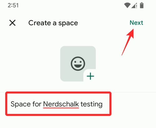 Now, add a name for your Space inside the ‘Create a space’ screen and then tap on ‘Next’.