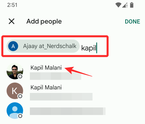 On the next screen, you’ll be able to add people to your space directly. You can add people from suggestions based on whom you frequently contact or search for their name or email address in the text field above. Simply tap on the person’s name to add them to your space and once everyone has been added, tap on ‘Done’ at the top right corner of your screen to complete the process.