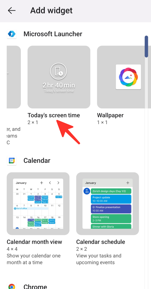 Step 4: Tap on the widget you want to add to your screen to select it. We have selected “Today’s screen time” in the image given below.