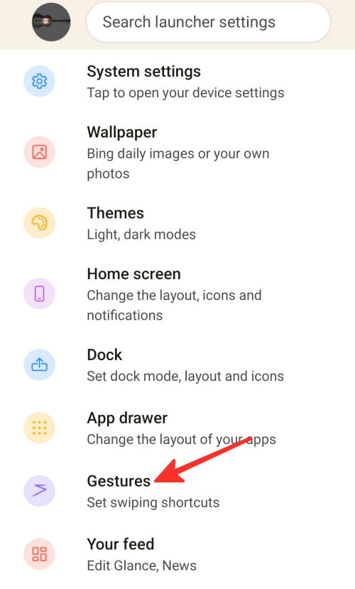 Step 1: Go to Microsoft Launcher’s settings and tap on Gestures from the list of options.
