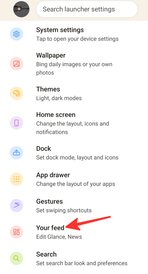 Step 1: Go to Microsoft Launcher’s settings and tap on Your feed from the list of options.