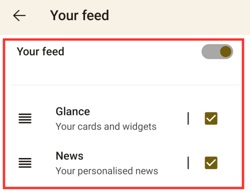 Step 2: The “Your feed” option allows you to specify which items will be displayed on your feed such as Glance or News. Additionally, you can disable the “Your feed” feature entirely if you prefer not to use it.