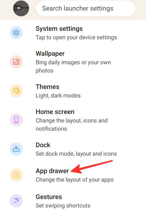 Step 1: Go to Microsoft Launcher’s settings and tap on App drawer from the list of options.