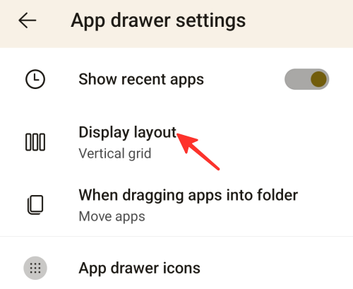 Step 3: You can also change the layout of your apps. Tap on Display layout to modify it.