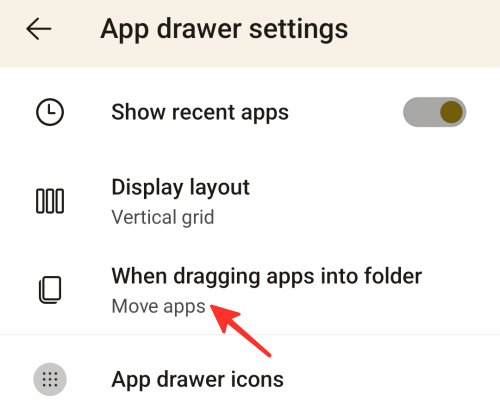 Step 6: Next, tap on When dragging apps into folder to change its setting.