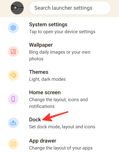 Step 1: Go to Microsoft Launcher’s settings and tap on Dock from the list of options.