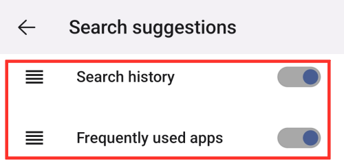 Step 7: Here, you can enable or disable “search history” and “frequently used apps.”