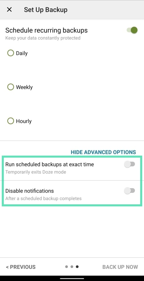 Step 13: Choose how often you want your SMSes to be backed up. You can choose from daily, weekly, and hourly.