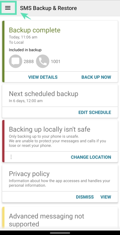 Your messages will now back up and continue getting backed up on your phone/cloud depending on a regular basis. In order to restore messages through SMS Backup & Restore, follow the instructions from down below: