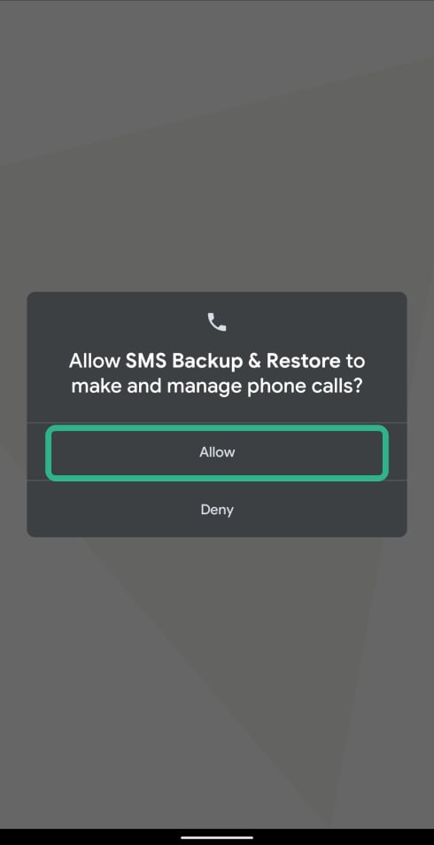 Step 4: Grant the app permission to contacts, messages, call logs, storage, and telephone by tapping on Allow.