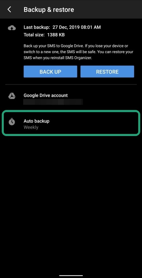 Step 9: Choose how often you want the app to backup your texts by tapping on Auto backup and selecting a preferred period.
