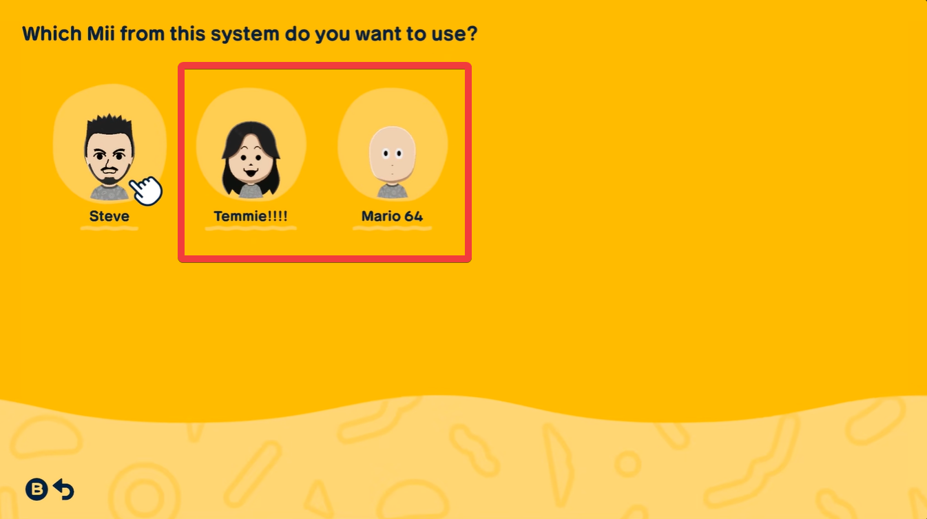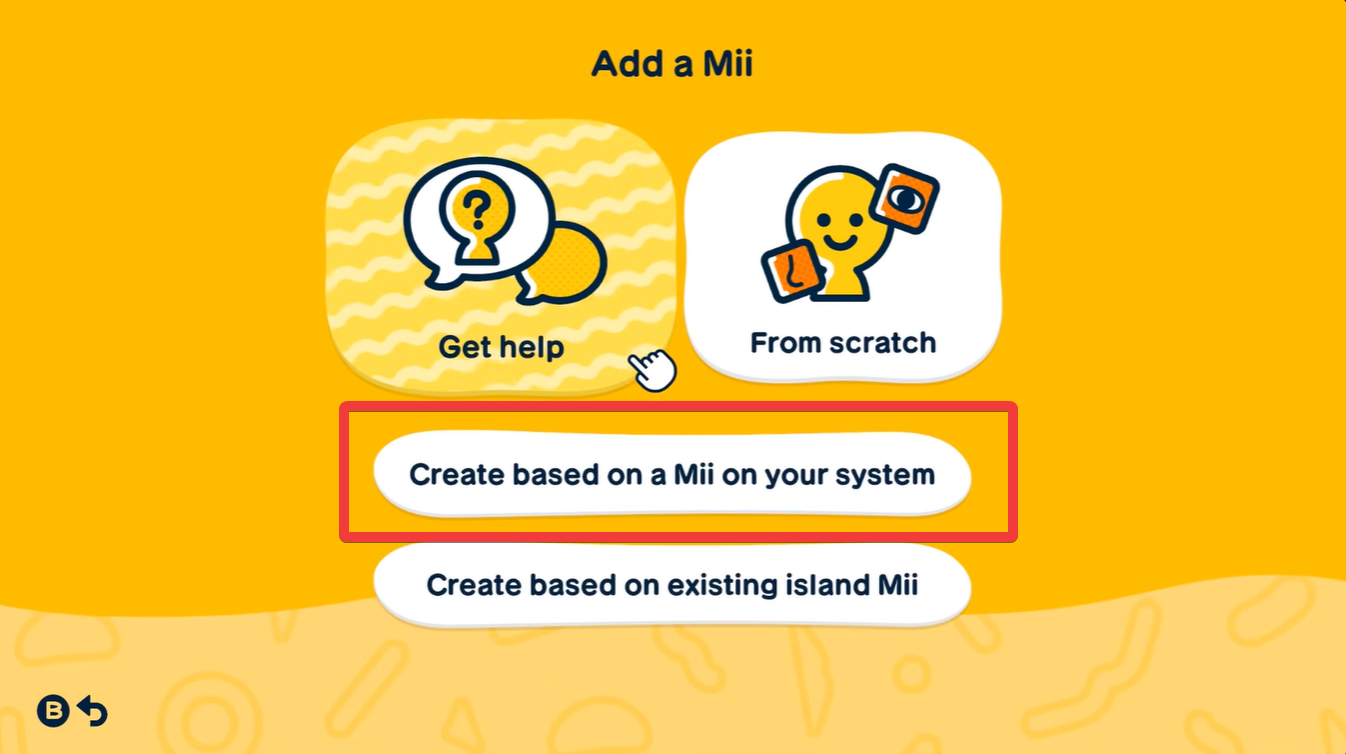 Choose the option to create a Mii based on one already saved on your system. This will display all Miis currently stored on your console.