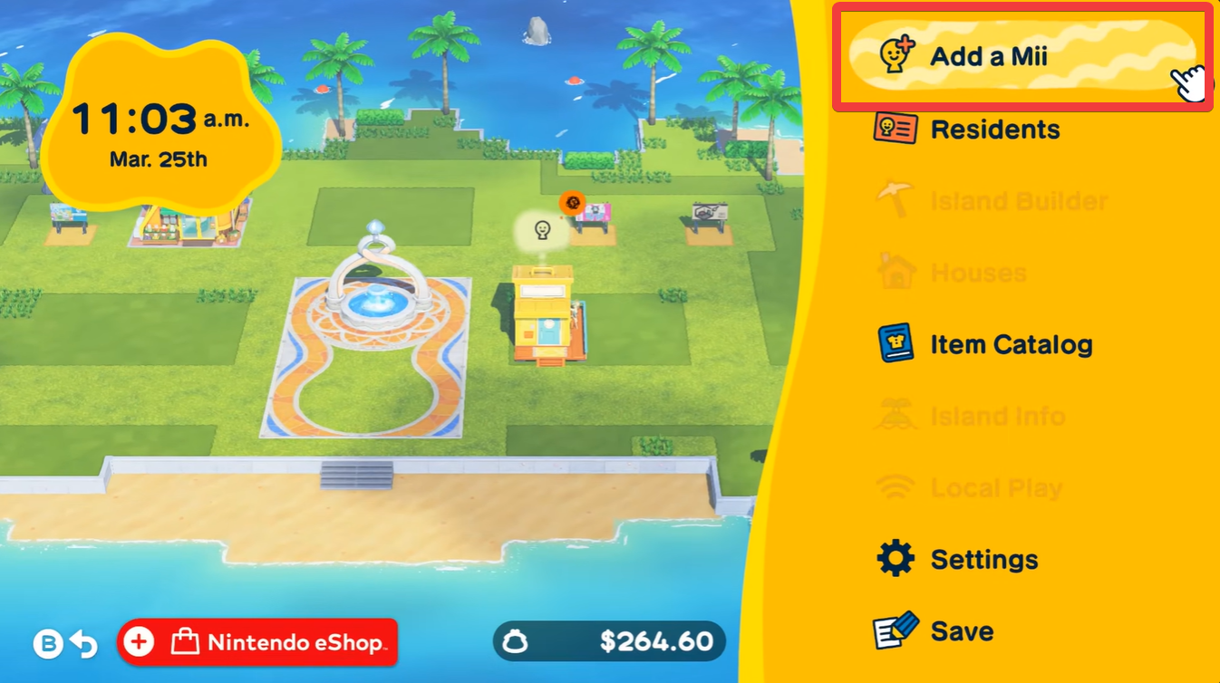 Select the Mii you imported from Miitopia and add it to your island. At this point, the Mii behaves like any other character in the game.
