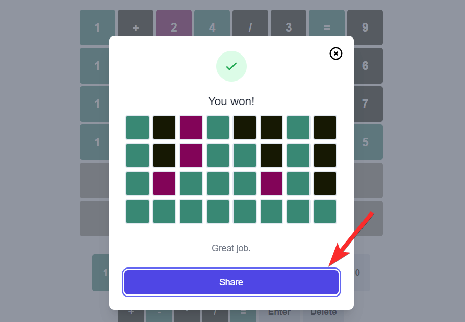 After finishing the Nerdle, you’ll be presented with a summary of your results. Tap Share.