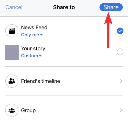 Tap Share. Remember, you can change sharing options based on your preferences.