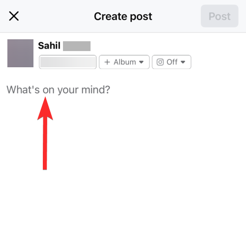 On your profile homepage, click on the typing area marked by the text What’s on your mind.