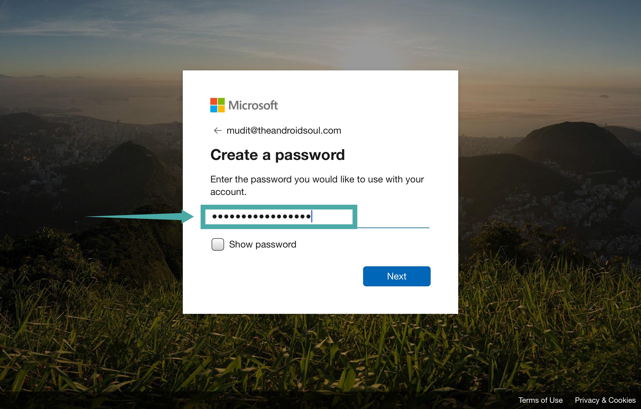 Step 3: Click on ‘Next’ in the bottom right-hand corner to be taken to the next page. Enter a safe password on this screen that you haven’t used anywhere else. Click on ‘Next’ once you are done.